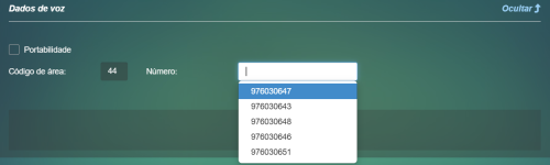 Ao realizar o cadastro de um novo contrato para o cliente, na seção de “Dados Voz” do contrato que esta sendo cadastrado, ao informar o código de área será chamado ação LISTAR NUMEROS DISPONÍVEIS onde será exibido no combobox ao lado o resultado da requisição com os número disponíveis para a área de cobertura informada