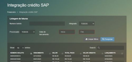 Tela: Financeiro > Integração crédito SAP