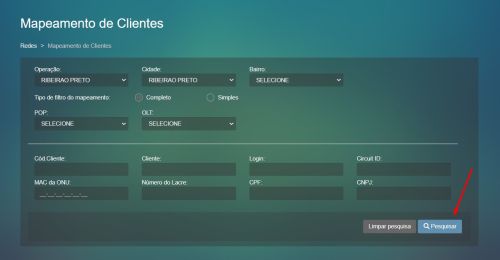 Na tela Redes > Mapeamento de Clientes foram feitas melhorias no funcionamento da tela.