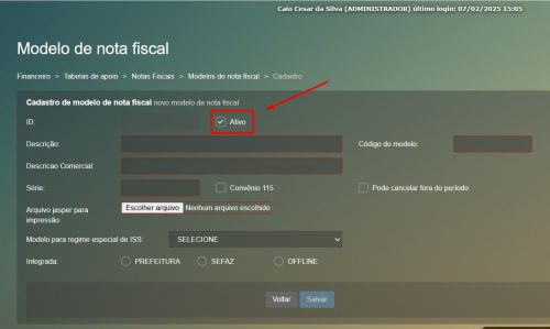 Flag para marcação de modelos de NF ativos