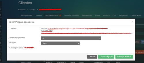 Criada opção na fatura para que seja possível dentro do Adapter copiar e enviar por email/sms a chave pix.