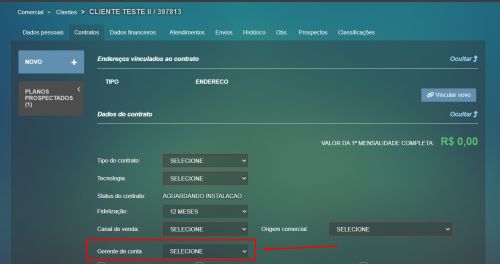 Ao vender contrato será possível informar se esse contrato terá um gerente vinculado.