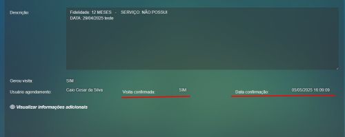 Na tela do atendimento dentro do Adapter será possível ao usuário verificar se a visita foi confirmada pelo cliente.