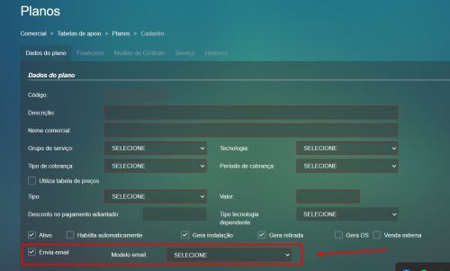 Se o plano possuir a flag 'Envia email' ativa, será enviado ao cliente um e-mail com o modelo configurado no cadastro do plano.